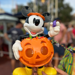 In between trick or treating and riding rides you can either fill up on your candy, OR you can try some party exclusive food and beverage items! My favorites this year had to be the Minnie Witch Hat, Madame Leota Séance Candle, and the Tombstone Tart! But the treat most guests have been looking forward to this year has been popcorn and soda! Guests have been waiting in line for up to TWO hours to get their hands on the exclusive sipper this year from Sleepy Hollow. You can’t blame them, Minnie as Winifred Sanderson is adorable! I’m not one to go crazy over popcorn buckets, but we couldn’t resist leaving without this light up Mickey Jack-o-lantern bucket! Unlike the Winifred Sipper, the popcorn bucket has been spotted at a few different popcorn carts and has a MUCH shorter line. We bought our popcorn bucket from the popcorn cart near the bridges to Liberty Square and Adventureland and were able to watch the Hocus Pocus Villain Spectacular while we waited!